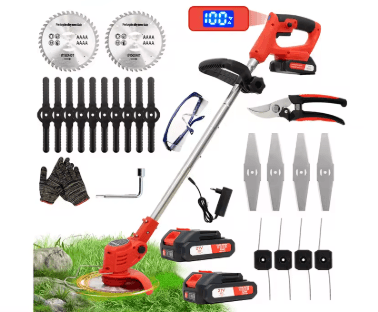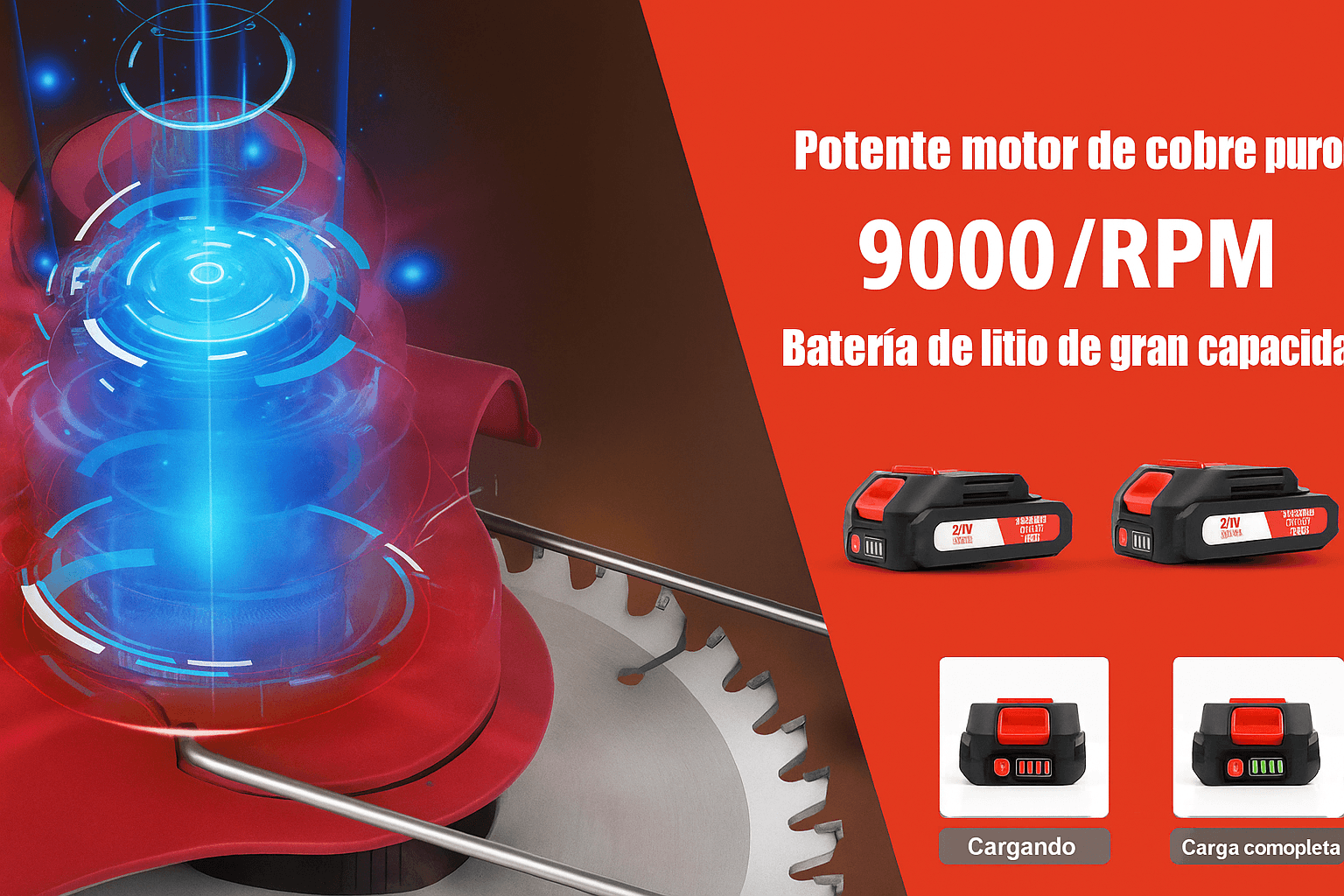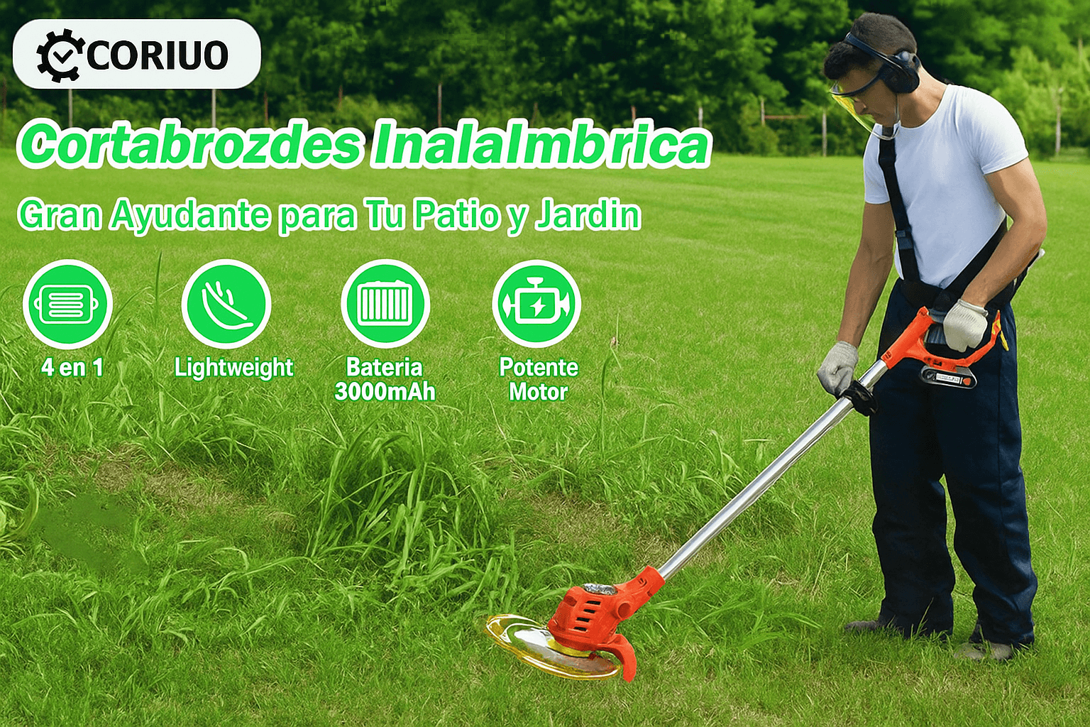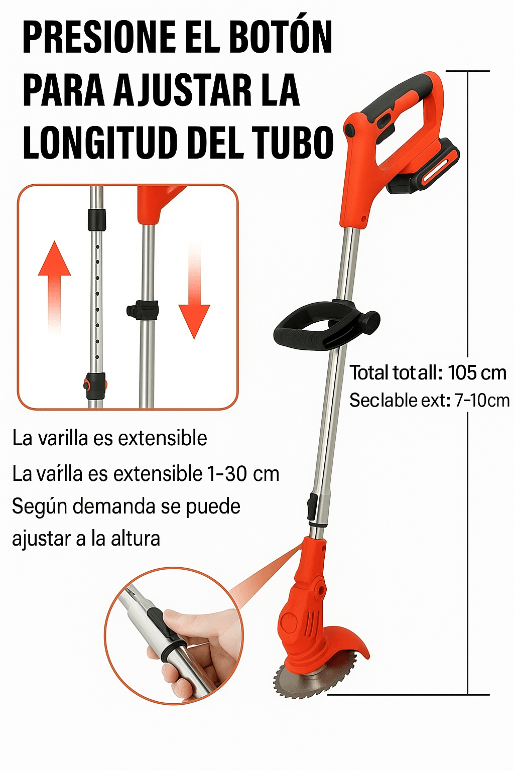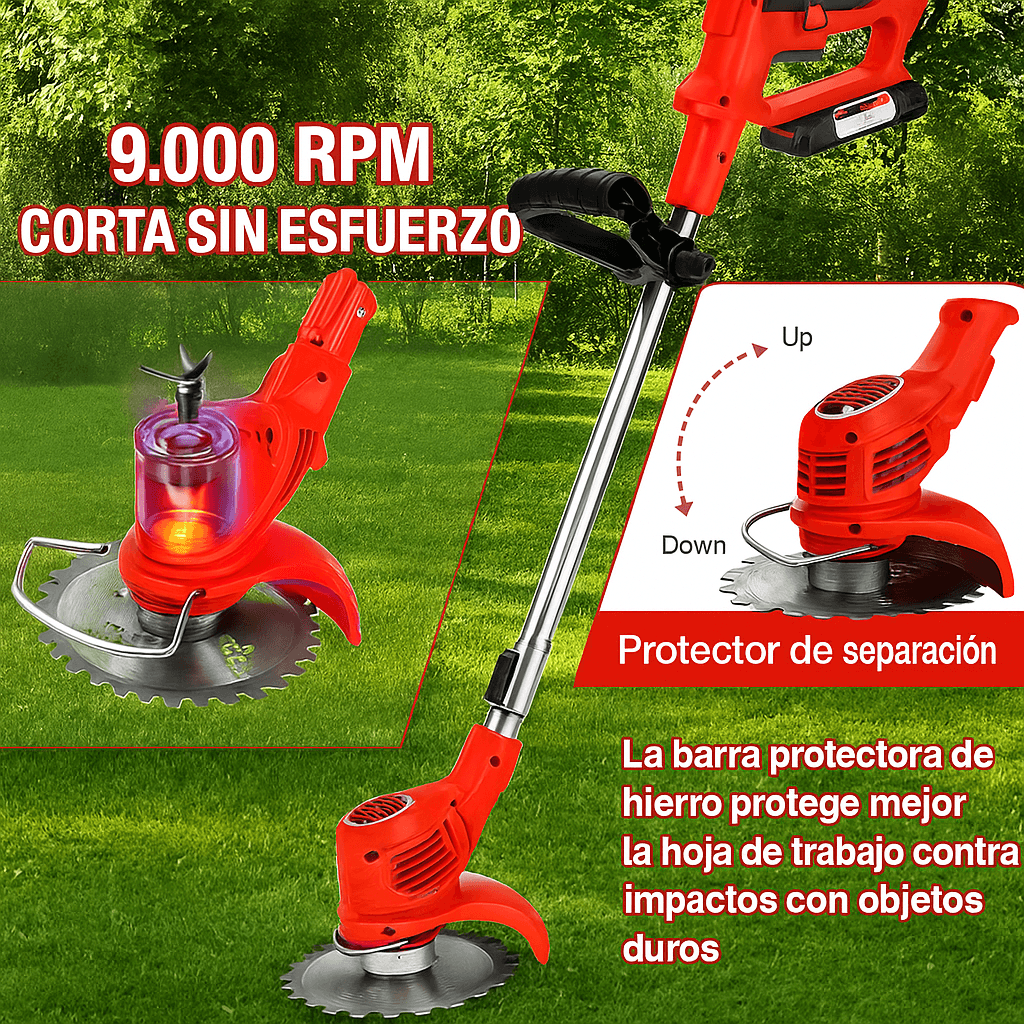 Esta desbrozadora eléctrica a batería está diseñada para ofrecer un rendimiento profesional en trabajos de jardinería domésticos. Gracias a su motor de cobre puro de alto rendimiento (hasta 9000 RPM), corta con facilidad césped, maleza, arbustos y ramas pequeñas.