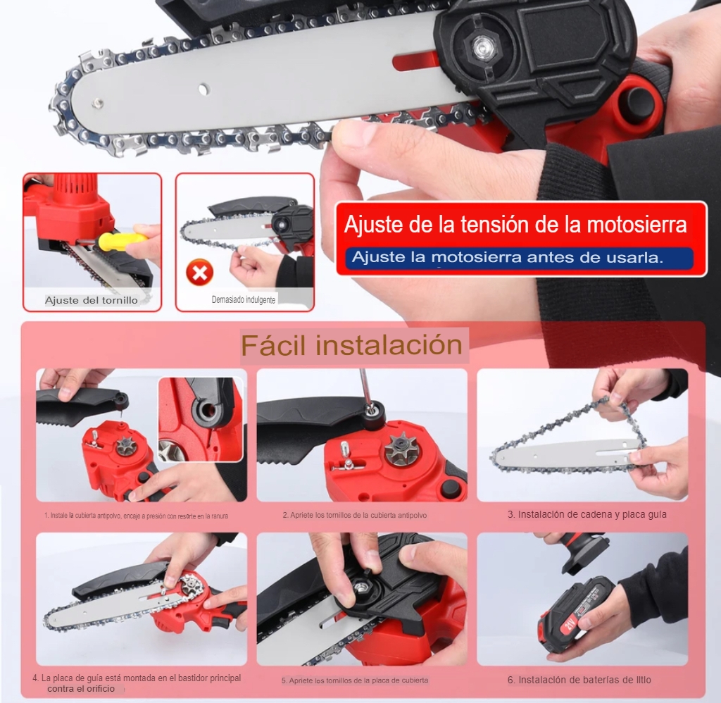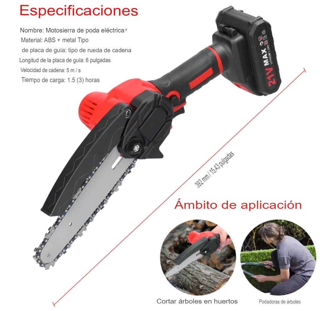 Motosierra eléctrica de poda 21V – Potencia y comodidad en tu mano