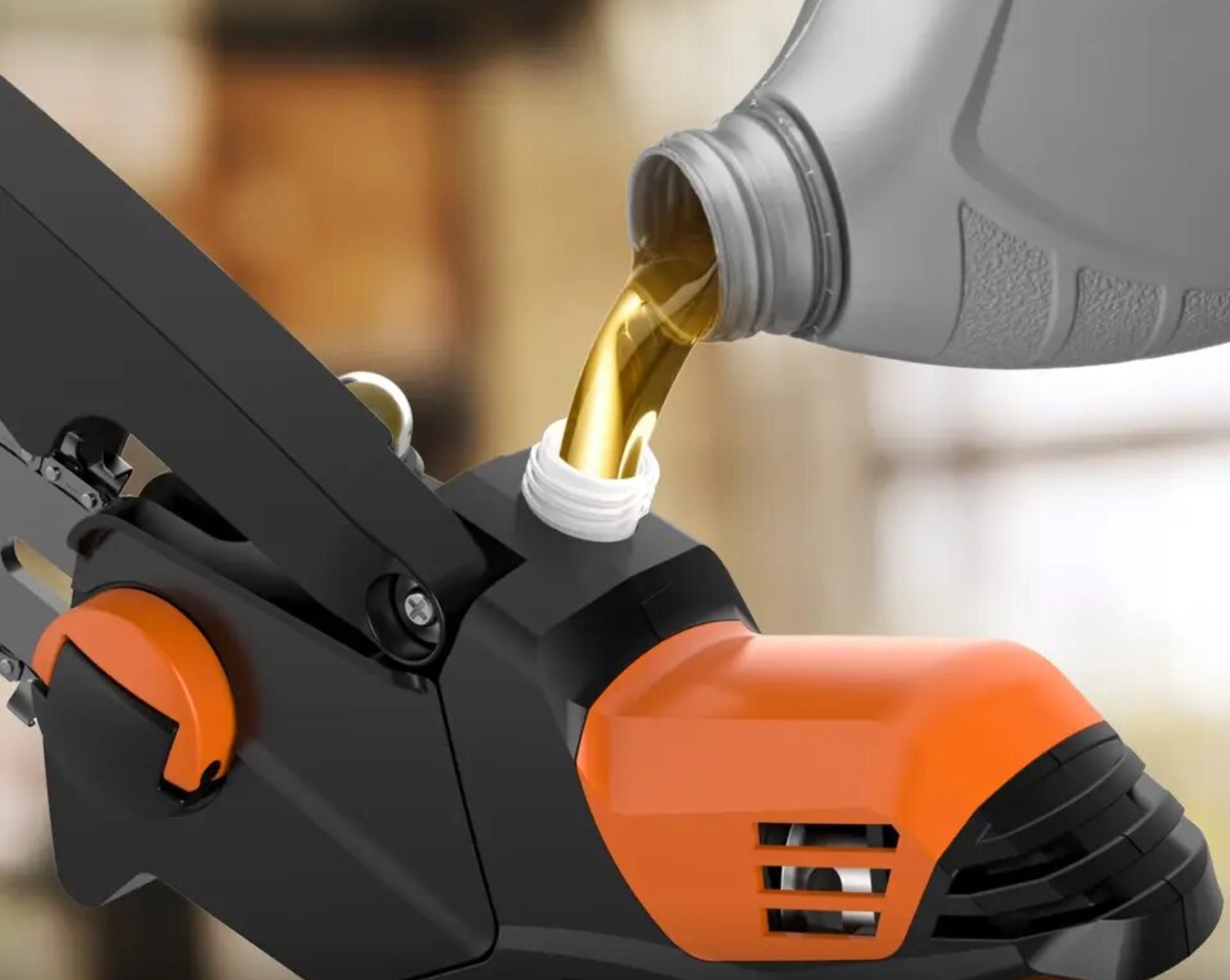 Equipada con una cadena de 8 pulgadas, un motor sin escobillas de cobre y depósito de aceite integrado, garantiza cortes precisos, rápidos y seguros. Su diseño ergonómico permite trabajar con una sola mano sin fatiga, incluso en sesiones prolongadas.