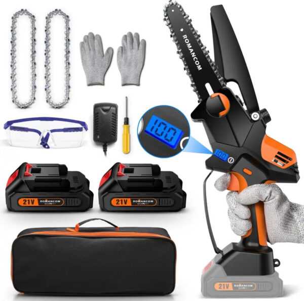 Potencia, seguridad y comodidad en una sola herramienta. Esta motosierra eléctrica mini de 24V es ideal para trabajos de poda, jardinería y corte de leña ligera, ofreciendo un rendimiento eficiente con total libertad gracias a su diseño portátil.