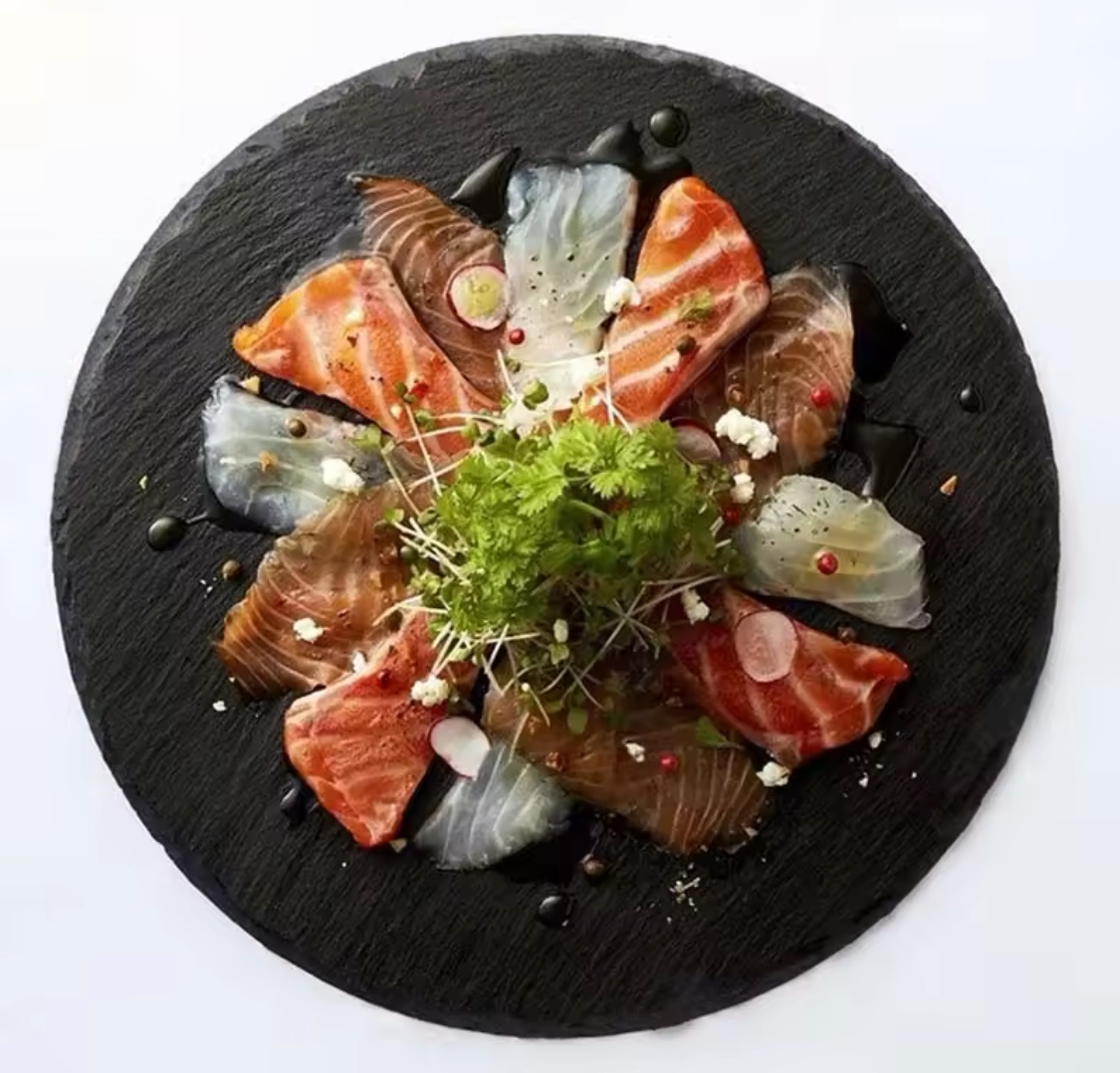 Dale un toque elegante y profesional a tu mesa con este plato de pizarra natural de 25 cm, perfecto para presentar tapas, sushi, quesos, carnes, postres o aperitivos de forma sofisticada.